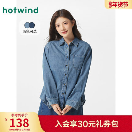 热风女士翻领长袖牛仔衬衫上衣