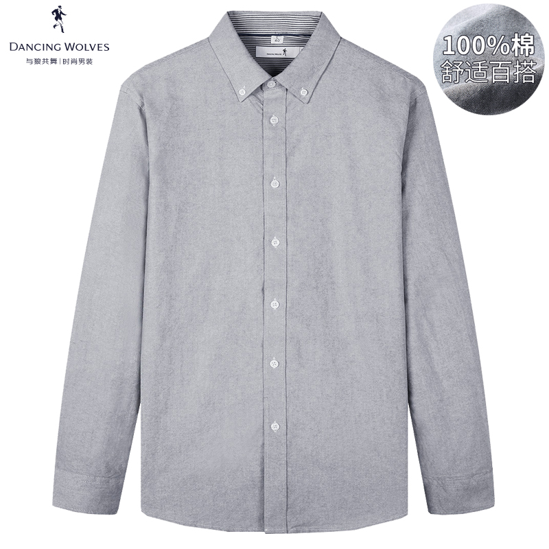 与狼共舞纯棉长袖衬衣男2025秋季新款潮流舒适透气休闲男士衬衫