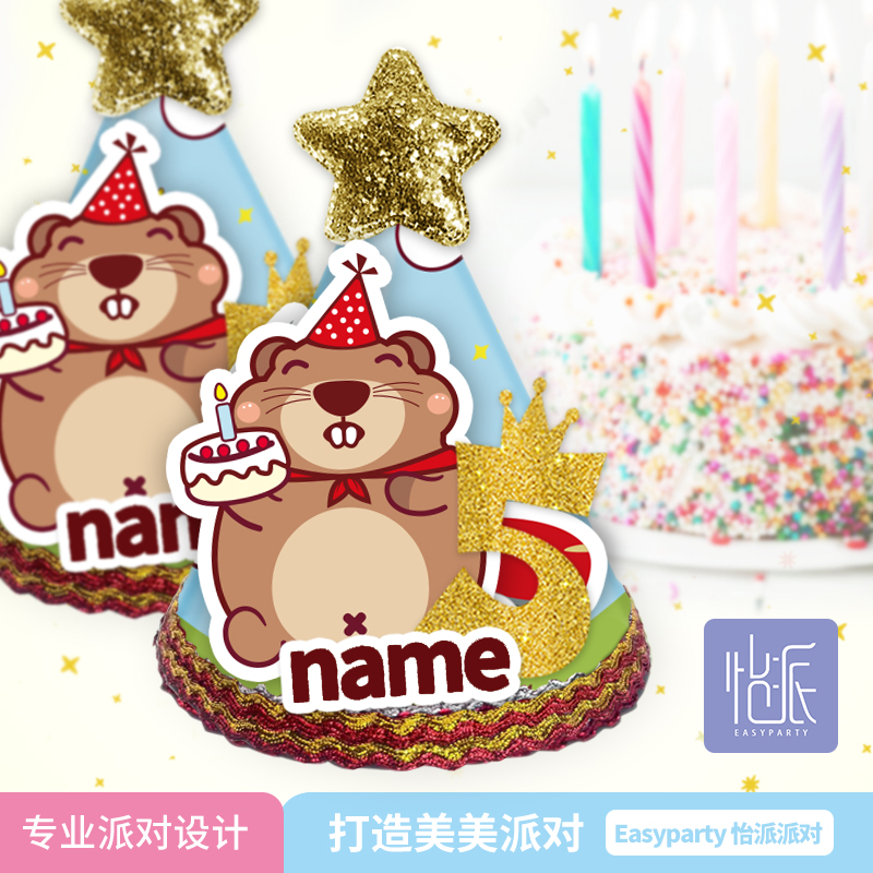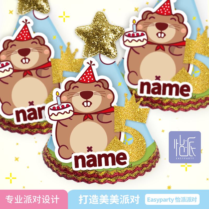 土拨鼠主题生日派对帽子头饰可爱卡通生日帽卡皮巴拉生日派对装饰