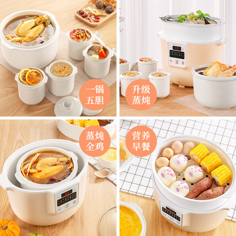 天际大容量4L隔水炖大家庭家用5胆电炖炖锅燕窝煲汤炖盅多功能