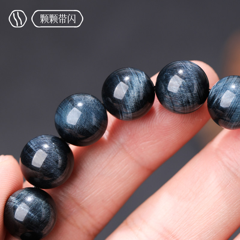 收藏级天然蓝虎眼石手链官方旗舰店虎晴石珠子散珠串珠手串男女款