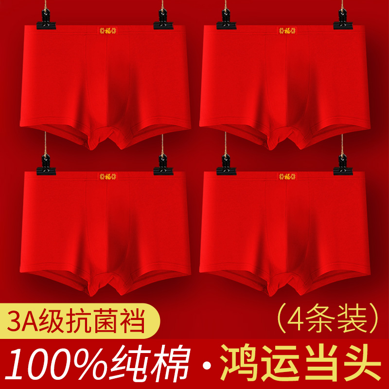 本命年内裤男大红色结婚送礼男生四角裤平角裤底裤头龙年宽松新款