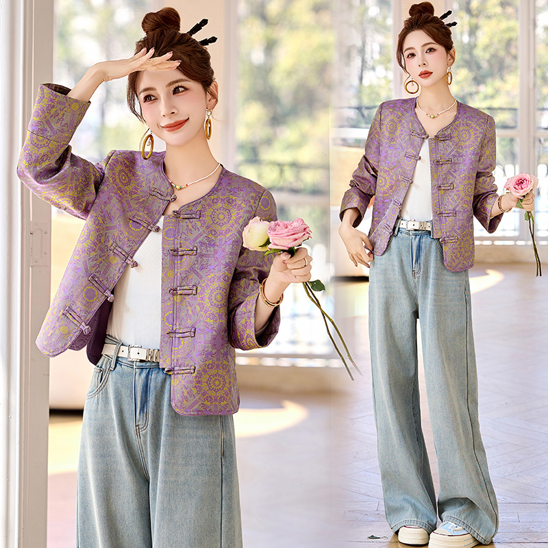 新中式国风外套女春秋气质小个子高级感复古盘扣提花唐装短款上衣
