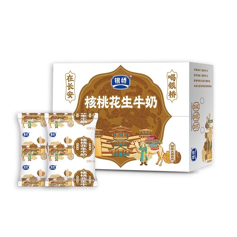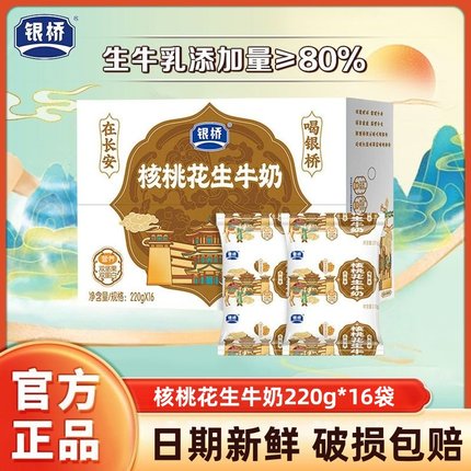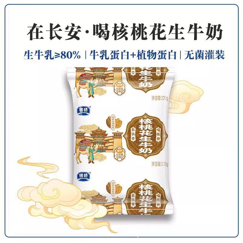 银桥核桃花生牛奶220g*16袋生牛乳儿童学生营养早餐牛奶饮品整箱