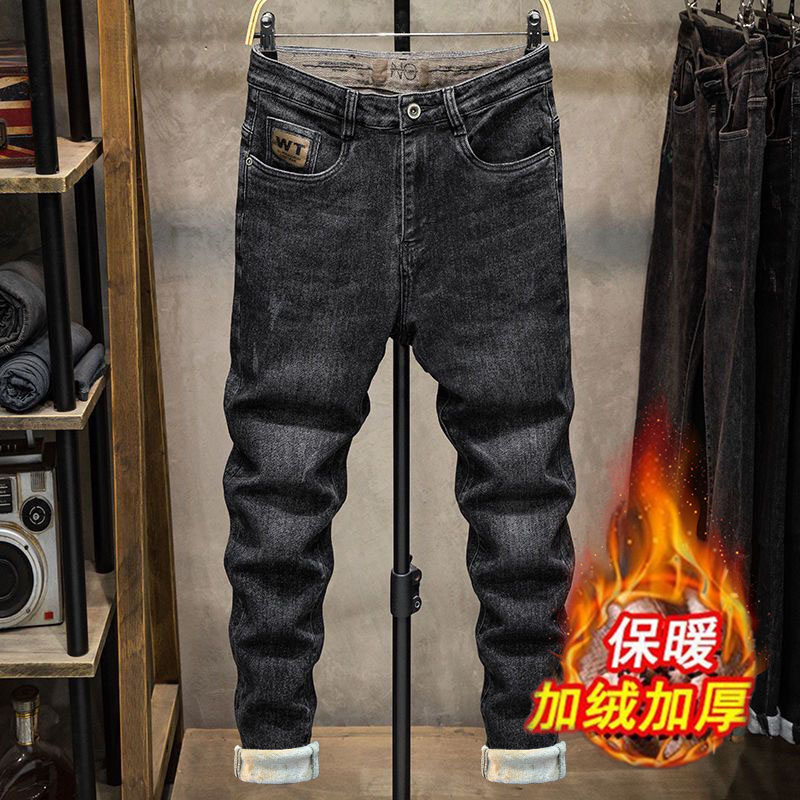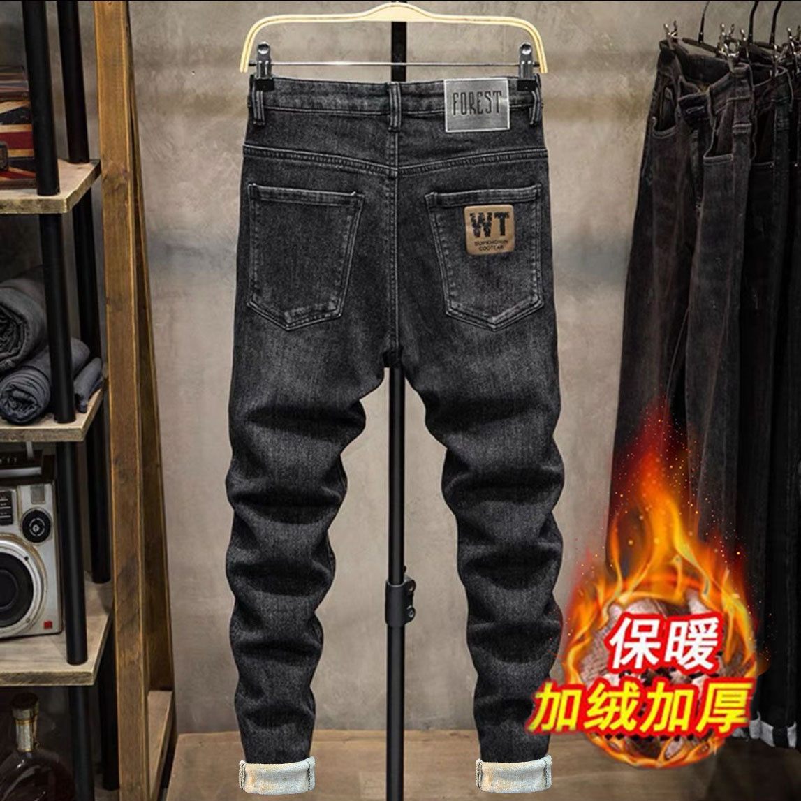 黑色新款牛仔裤男修身韩版潮流春季潮牌黑百搭破洞九分小脚长裤子