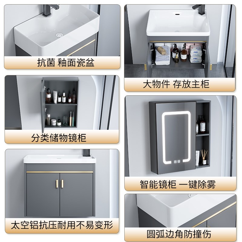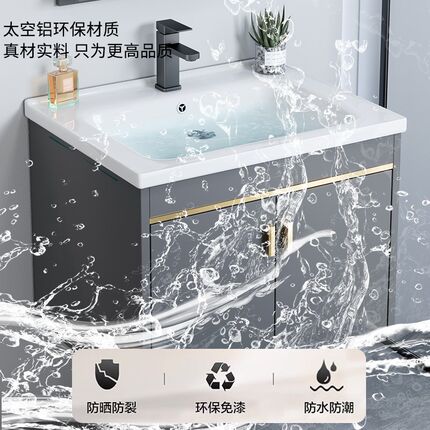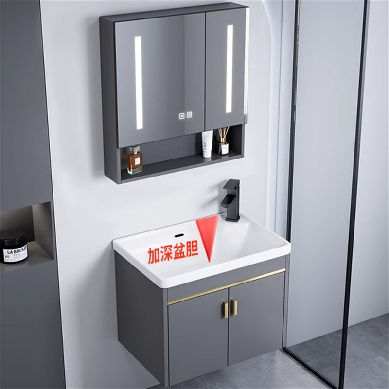 超窄洗手盆加深洗漱台小户型洗脸盆挂墙式浴室柜组合太空铝卫生间