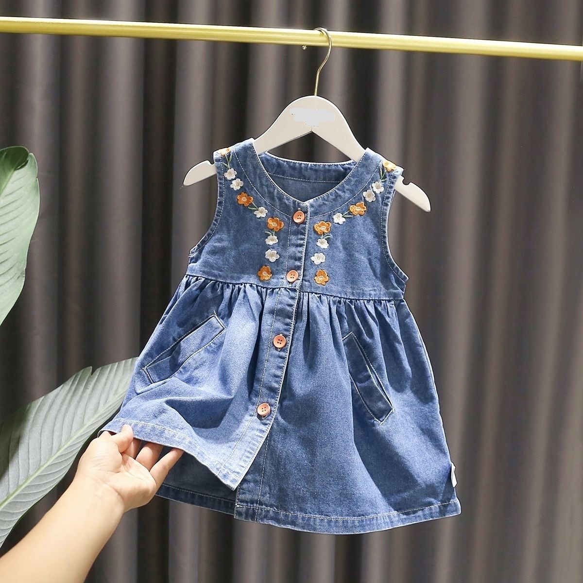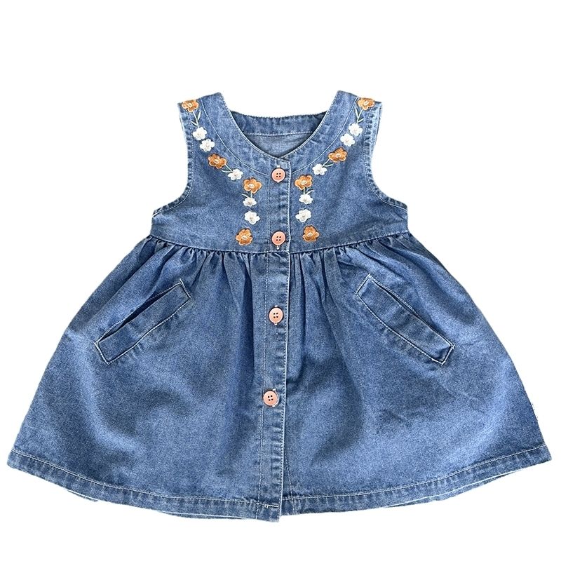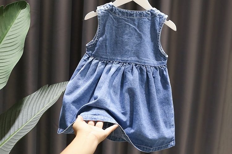 女宝宝洋气绣花连衣裙婴儿秋装新款韩版女童潮搭牛仔背心马甲裙子