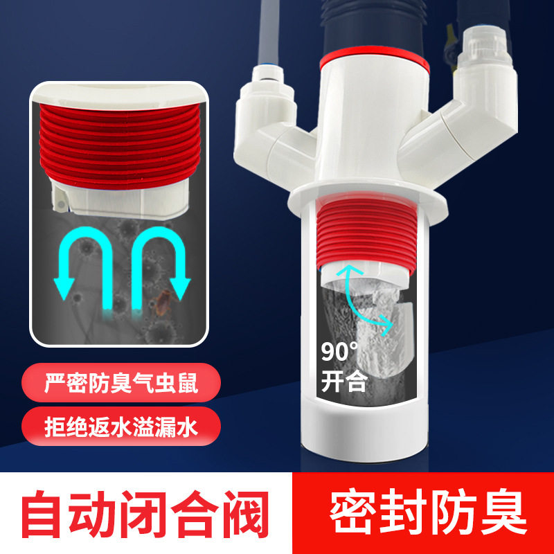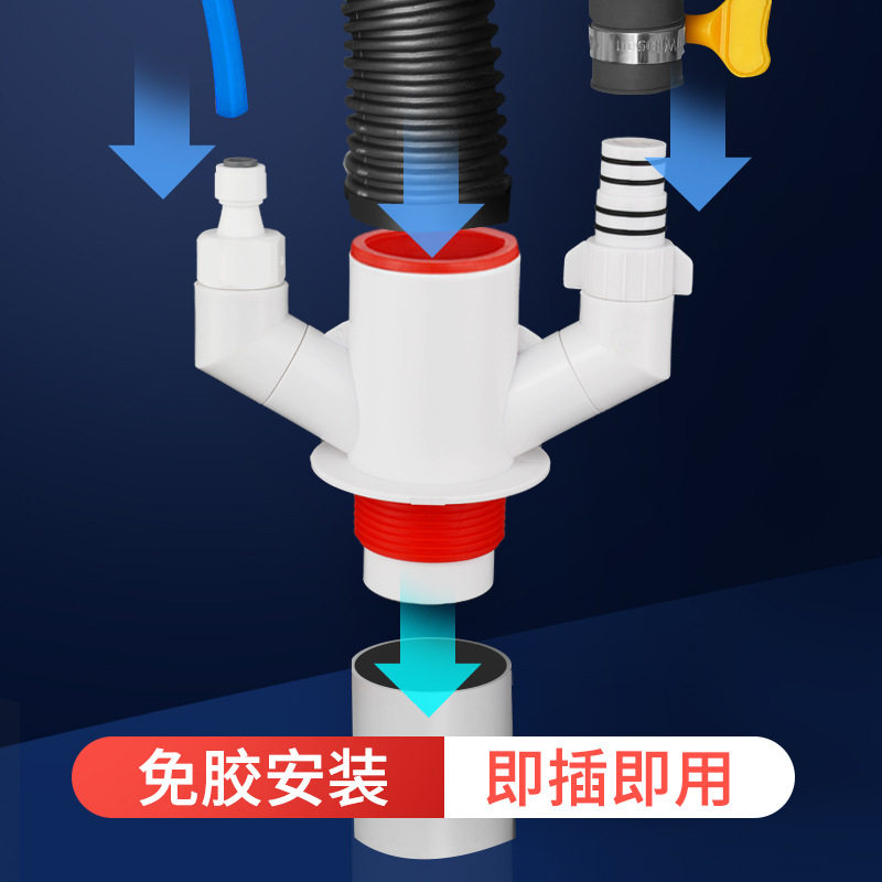厨房下水管三头通下水道五通分水器排水管防返臭集成下水器