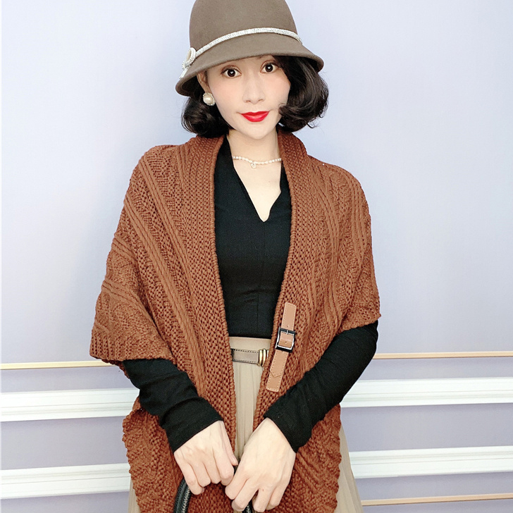 毛线针织披肩女2025新款时尚洋气高档秋款斗篷式外套三角围巾外搭