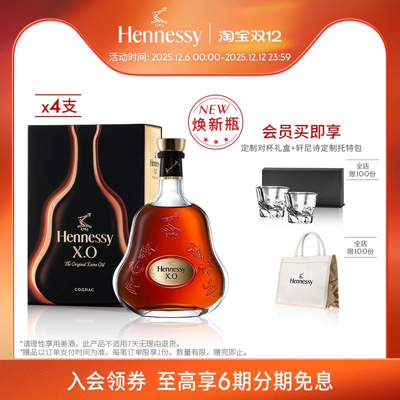 【官方直营】轩尼诗XO干邑白兰地700ml 4支 进口洋酒正品hennessy