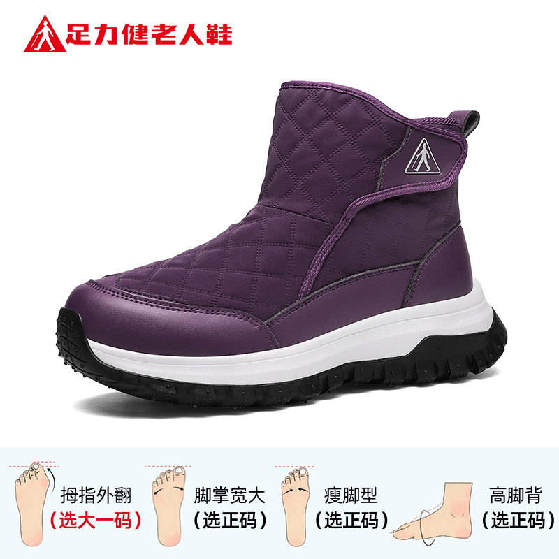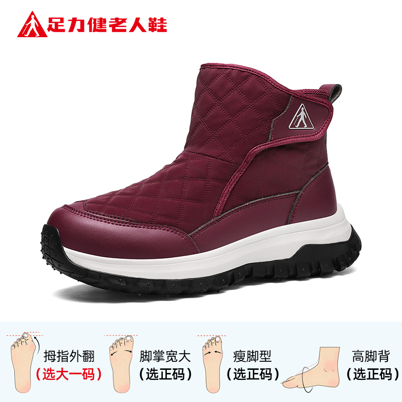 足力健老人鞋官方旗舰店正品棉鞋女秋冬加绒加厚妈妈魔术贴雪地靴