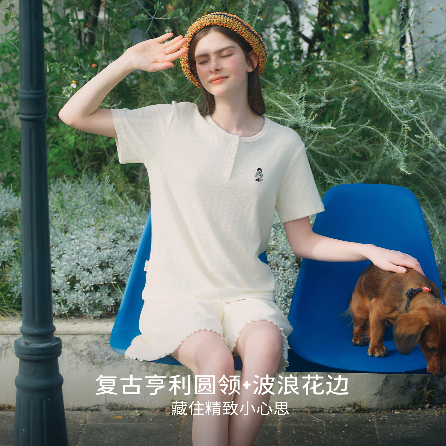 TeenieWeenie小熊睡衣女款2026新款春夏纯棉短袖棉提花家居服套装