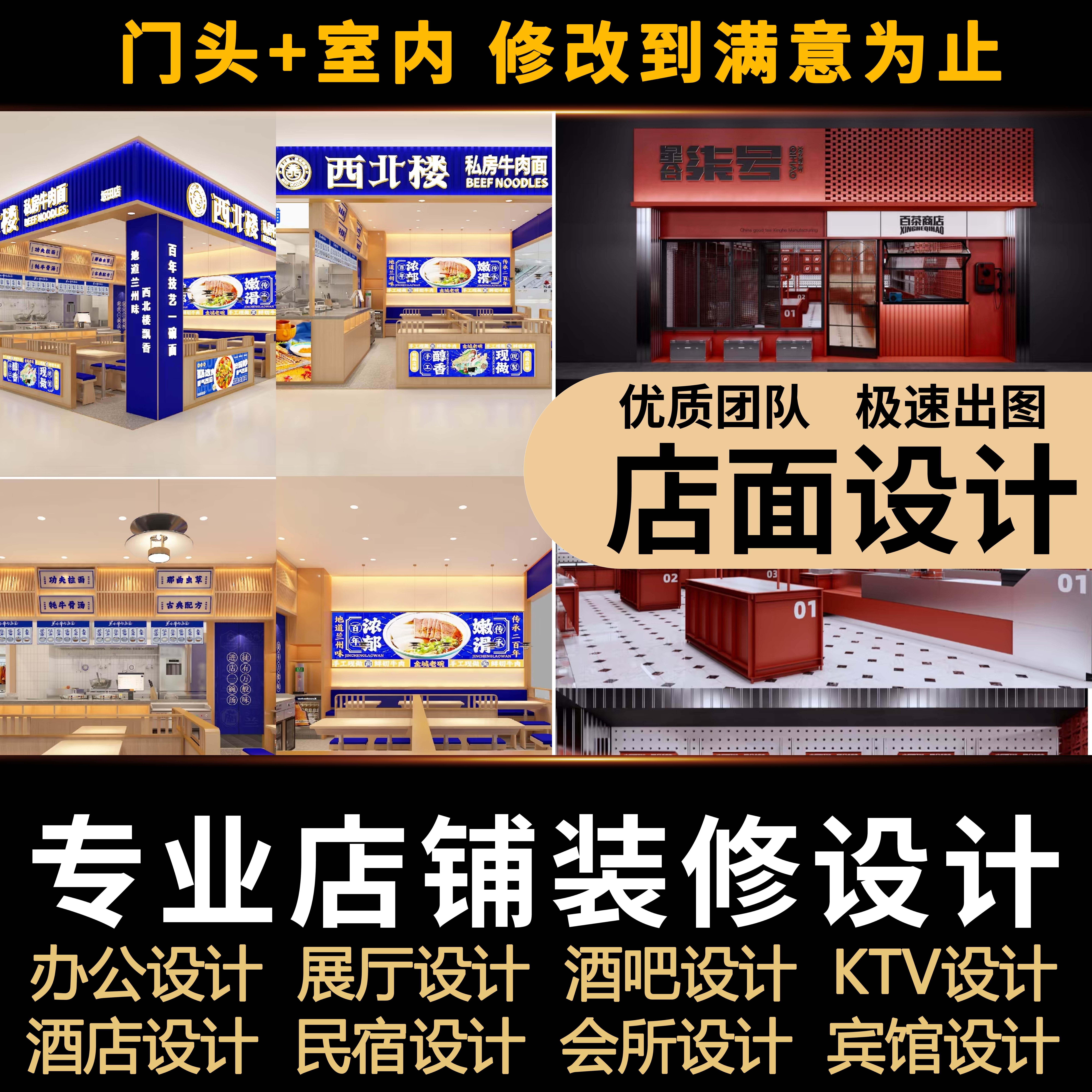实体餐饮商铺店铺招牌餐厅品牌全案装修设计效果图方案门头制作