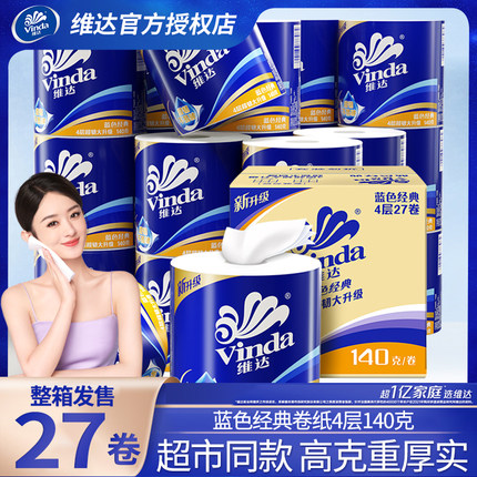 维达卷纸蓝色经典卫生纸巾四层家庭装有芯卷筒纸厕所纸实惠装手纸