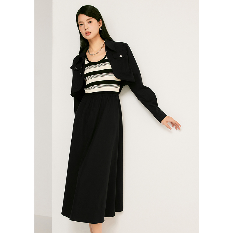 EF复古休闲工装风套装女2025春季新款短款上衣背心连衣裙两件套