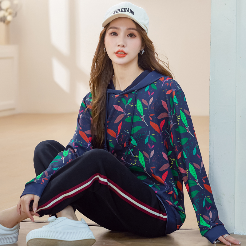 大码女装春装230斤胖mm洋气休闲上衣胖妹妹遮肉显瘦长袖连帽T恤衫