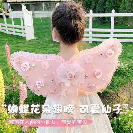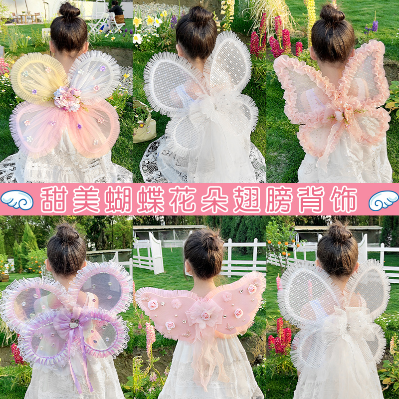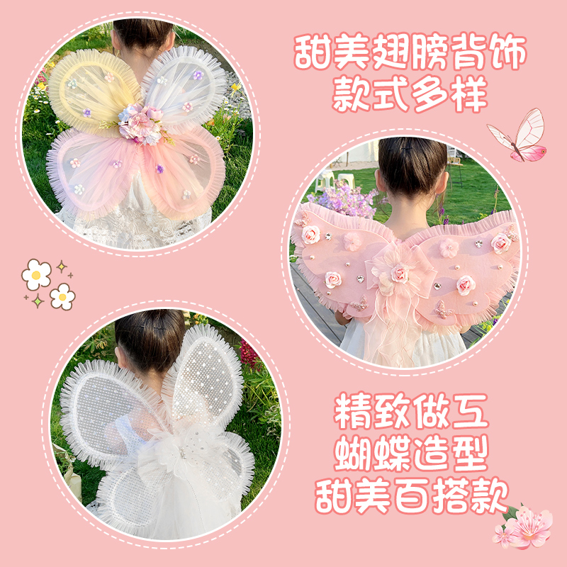 新款儿童天使彩虹蝴蝶花朵翅膀女孩可爱公主宝宝背饰披风演出道具