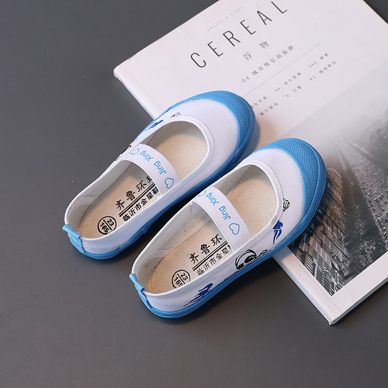 小白鞋儿童帆布鞋舞蹈体操鞋幼儿园学生春夏体操一脚蹬演出表演鞋