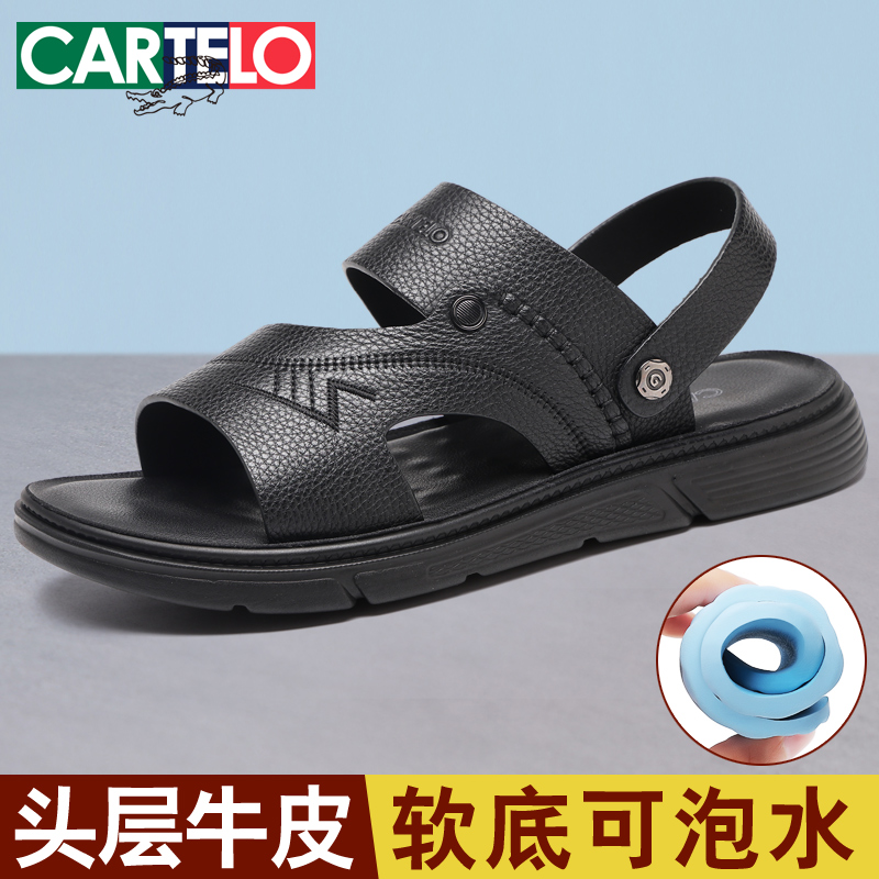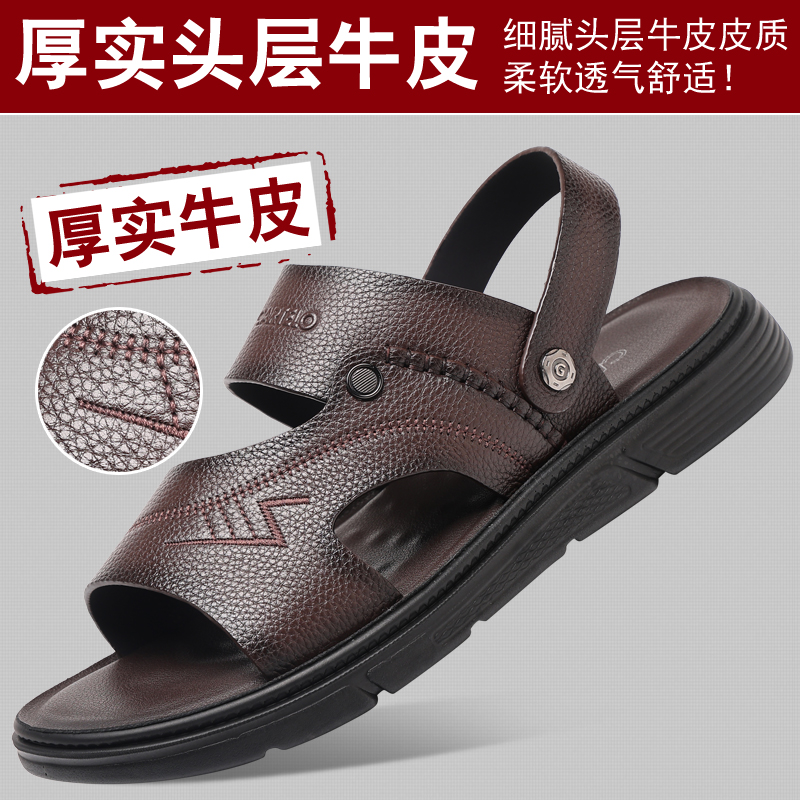夏季凉鞋男真皮头层牛皮男士爸爸鞋休闲防滑沙滩鞋透气软底凉拖鞋