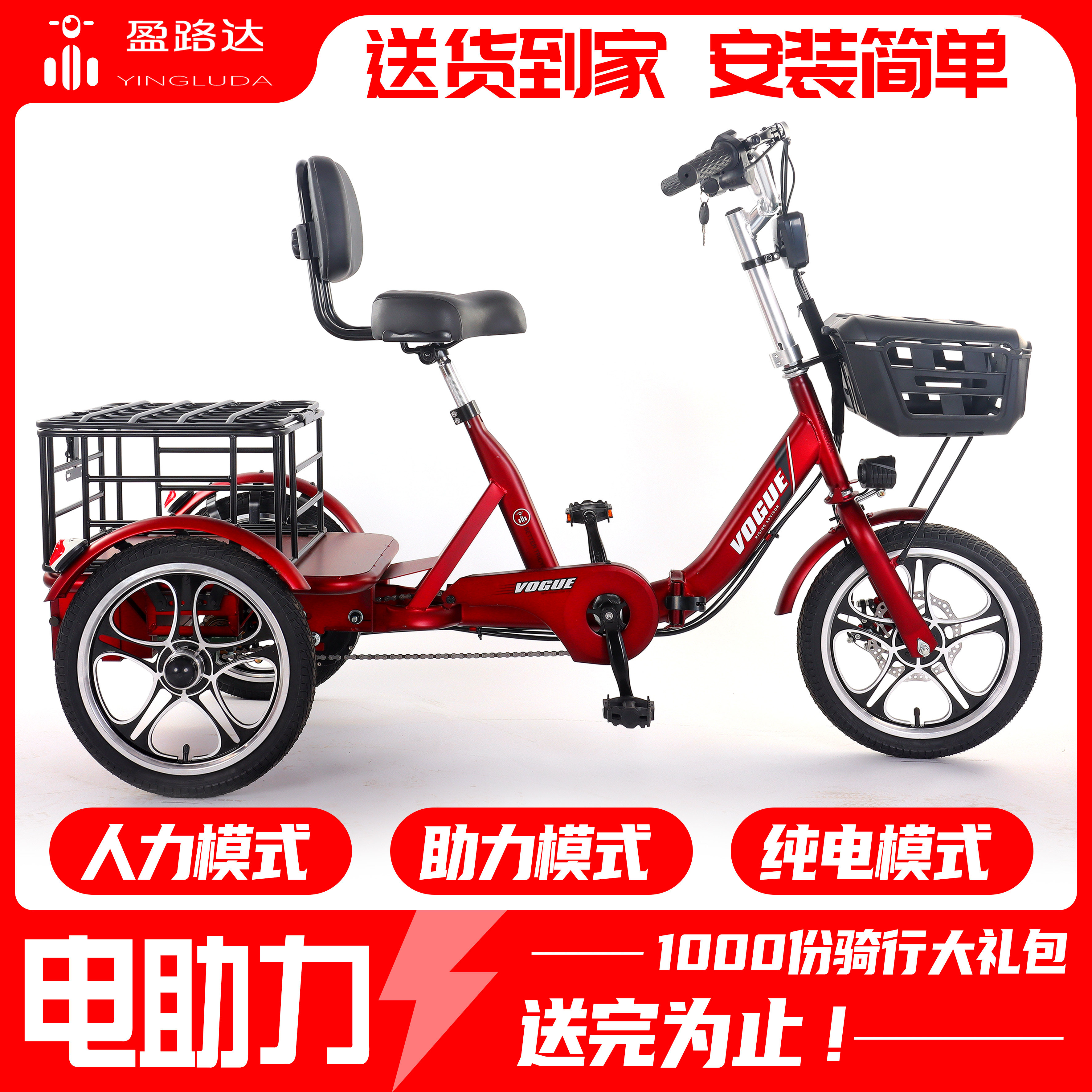 盈路达新款品牌电动三轮车老人脚踏小型折叠助力三轮车家用自行车