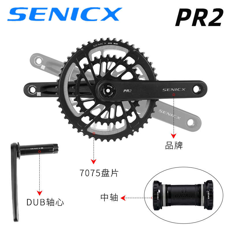 SENICX驭勇 PR2公路车自行车牙盘双盘超轻曲柄DUB轴心中轴铝合金