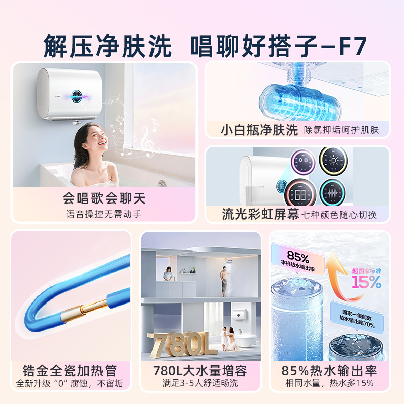 【国家补贴】海尔智家统帅电热水器60L家用一级扁桶小音浪F7