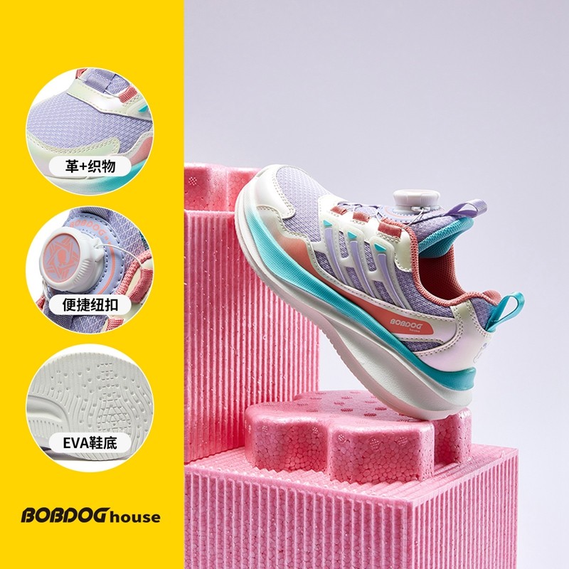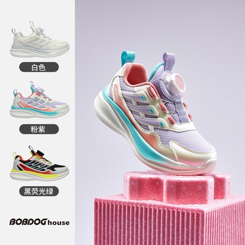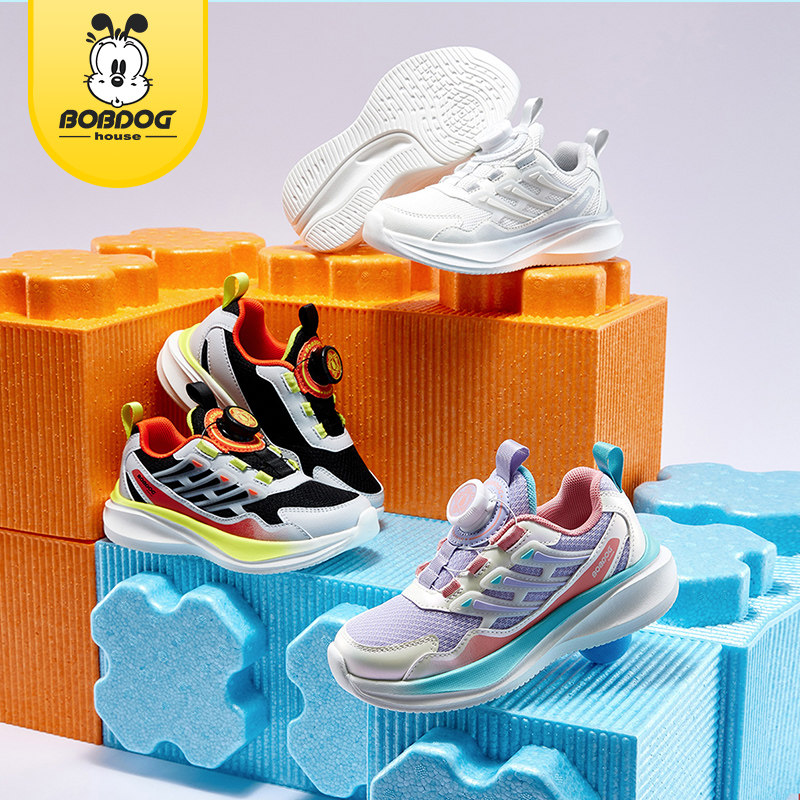 巴布豆大童鞋2025新款小学生透气运动鞋儿童防滑小白鞋网面透气