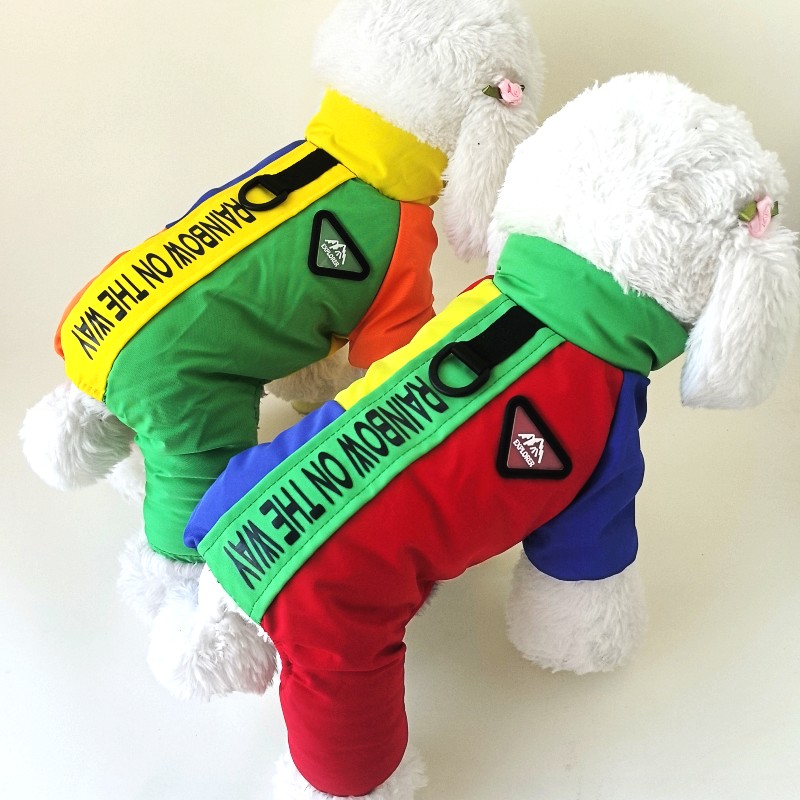 拼彩棉衣宠物衣服狗狗加厚服装秋冬装保暖防寒四脚泰迪比熊可牵引