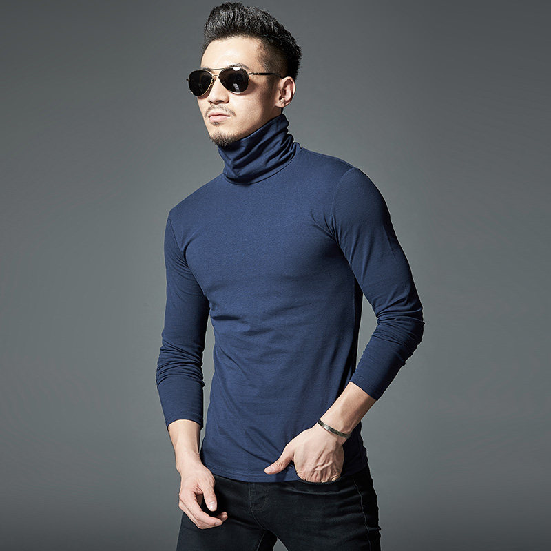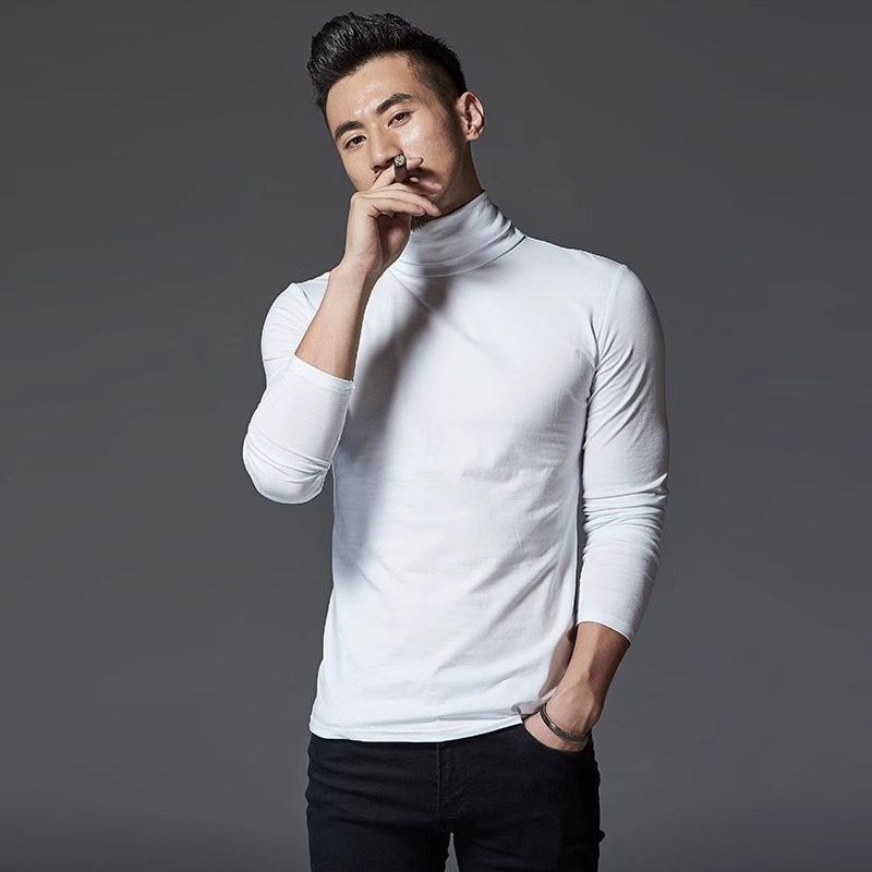 纯棉高领男士长袖t恤秋衣弹力打底衫半中领冬装加绒加厚保暖内衣
