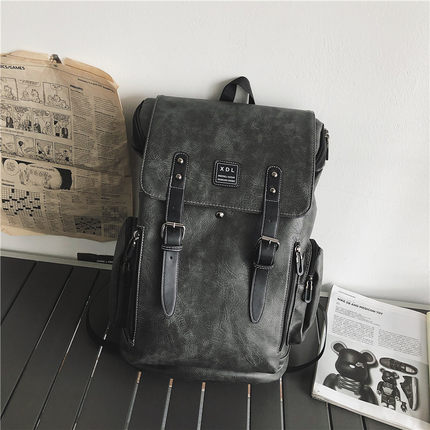 大学生书包休闲电脑包大容量双肩包男士复古时尚潮流皮革旅行背包