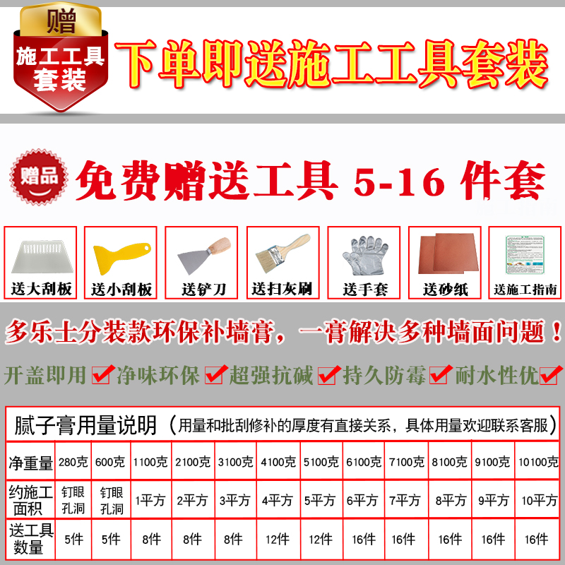 多乐士腻子补墙膏钉眼孔洞墙面修补膏防霉防潮白色抗碱墙面修复膏