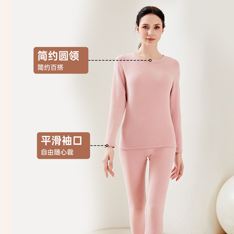 保暖内衣女士秋冬季发热膨体纤维圆领打底腈纶秋衣裤秋裤套装薄款