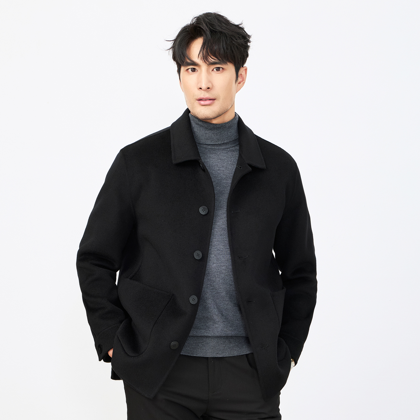 秋冬高端双面呢休闲羊毛夹克男士舒适保暖抗起球修身翻领毛呢外套