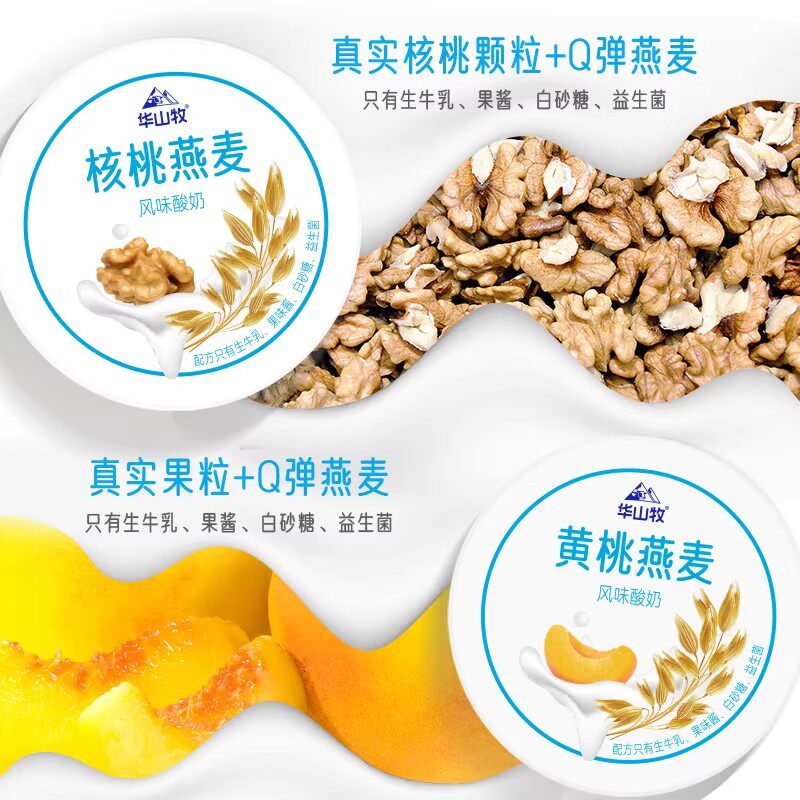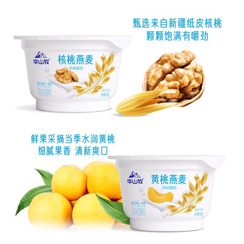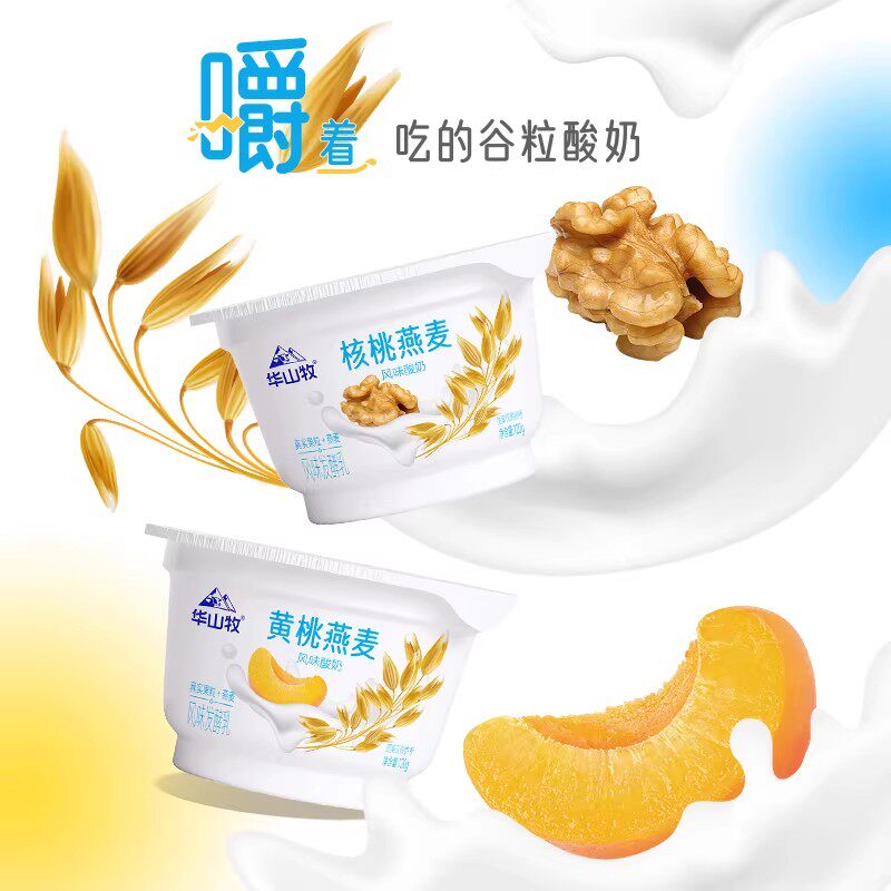 华山牧黄桃燕麦风味酸奶120gx12碗营养发酵奶国风酸奶碗风味饮品