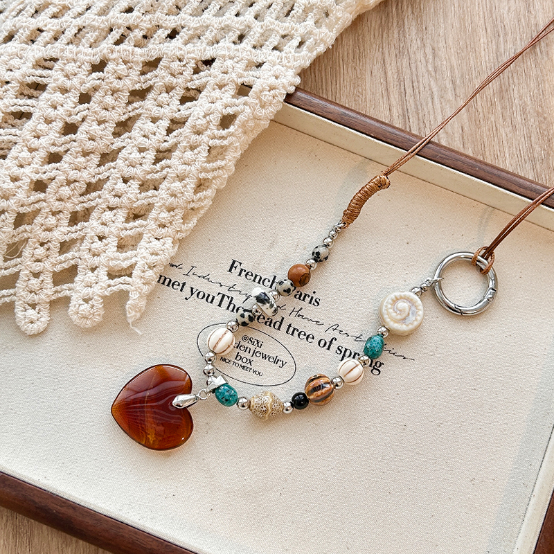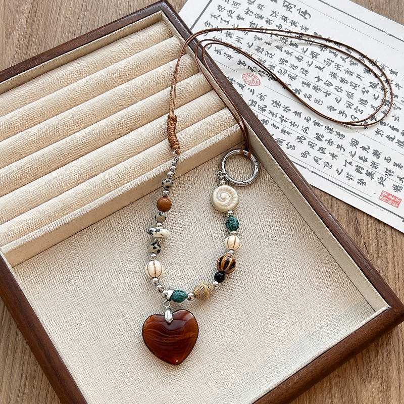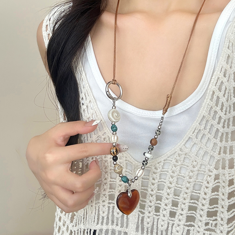 复古爱心串珠长款项链女2025新款波西米亚毛衣链民族风轻奢配饰
