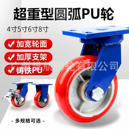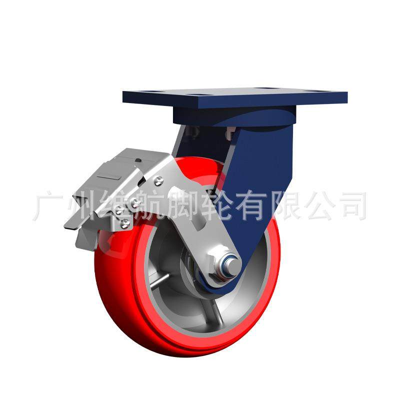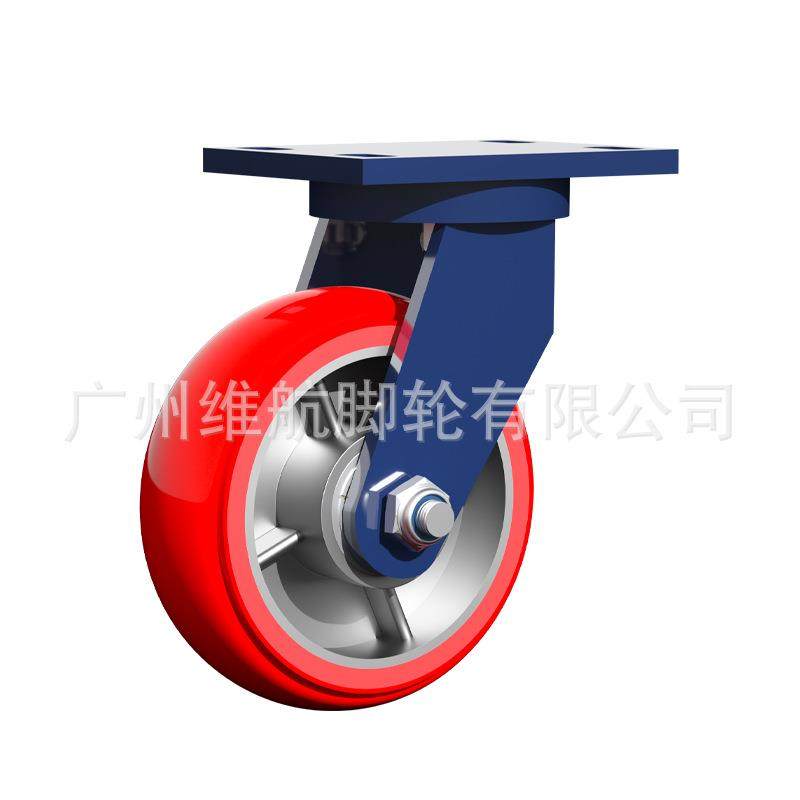 超重型脚轮聚氨酯万向轮推车轮子6寸脚轮定向轮载重1吨蓝支架pu轮