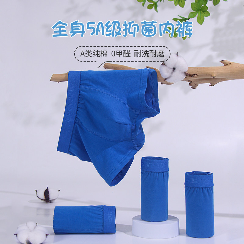真维斯儿童内裤男童纯棉A类平角裤蓝色中大童底裤小学生四角短裤