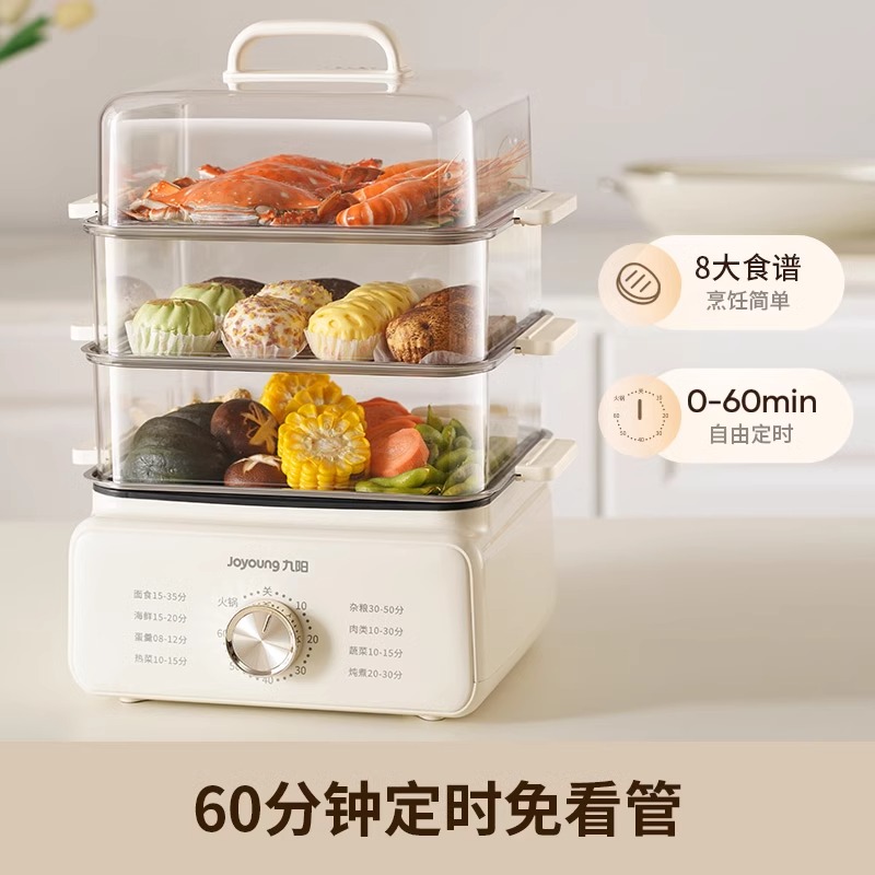 九阳电蒸锅多功能火锅煮锅大容量家用预约多层蒸汽锅三层蒸笼