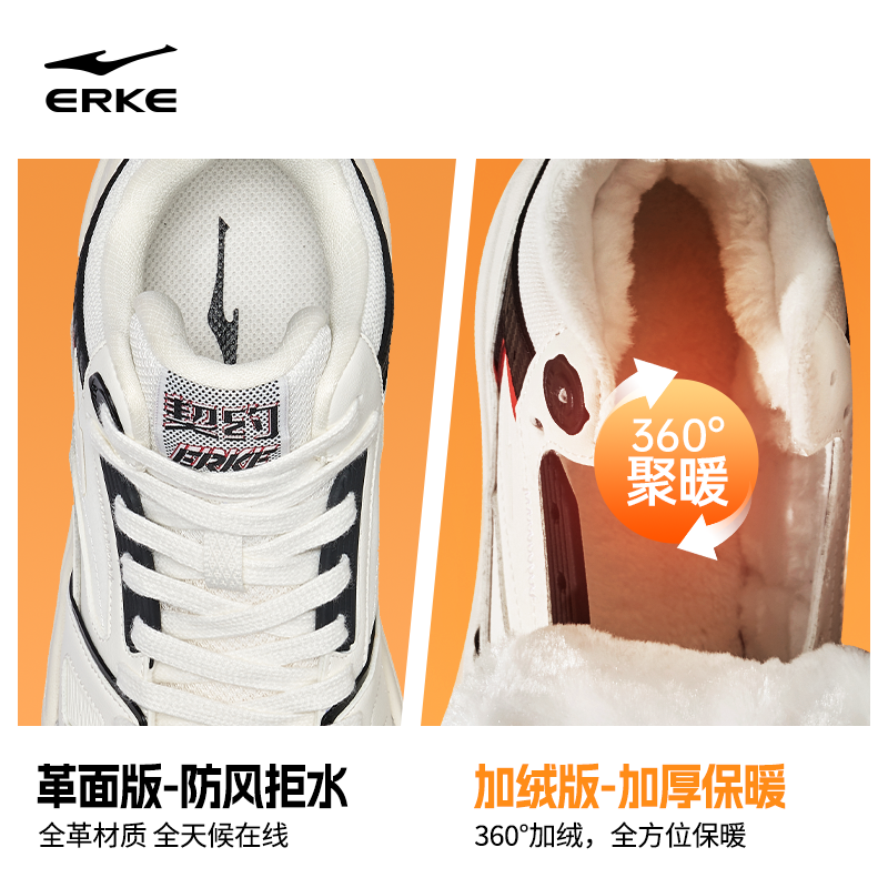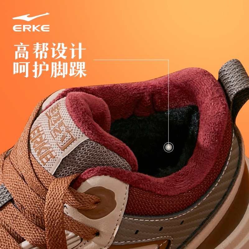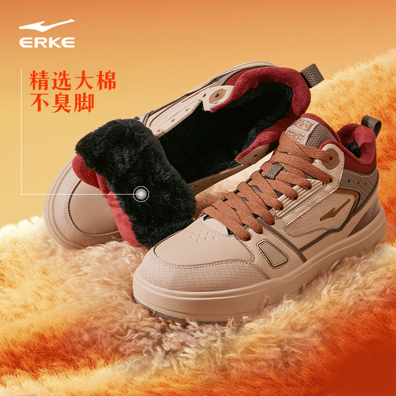 契约4鸿星尔克板鞋男鞋冬季新款加绒鞋子加厚棉鞋高帮男士运动鞋