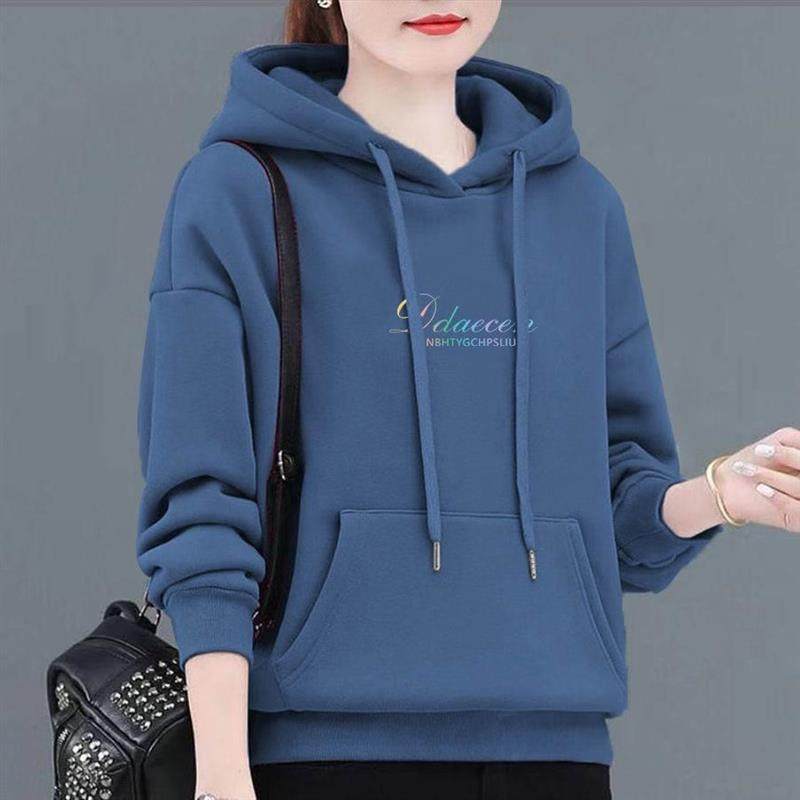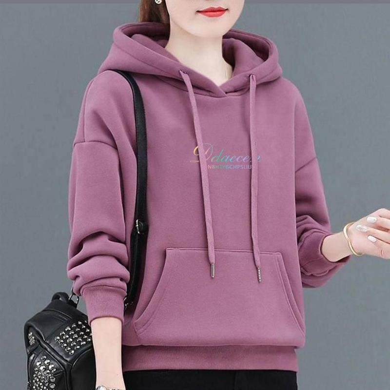 加绒加厚卫衣女春秋季保暖衫连帽减龄印花妈妈装显瘦宽松百搭上衣