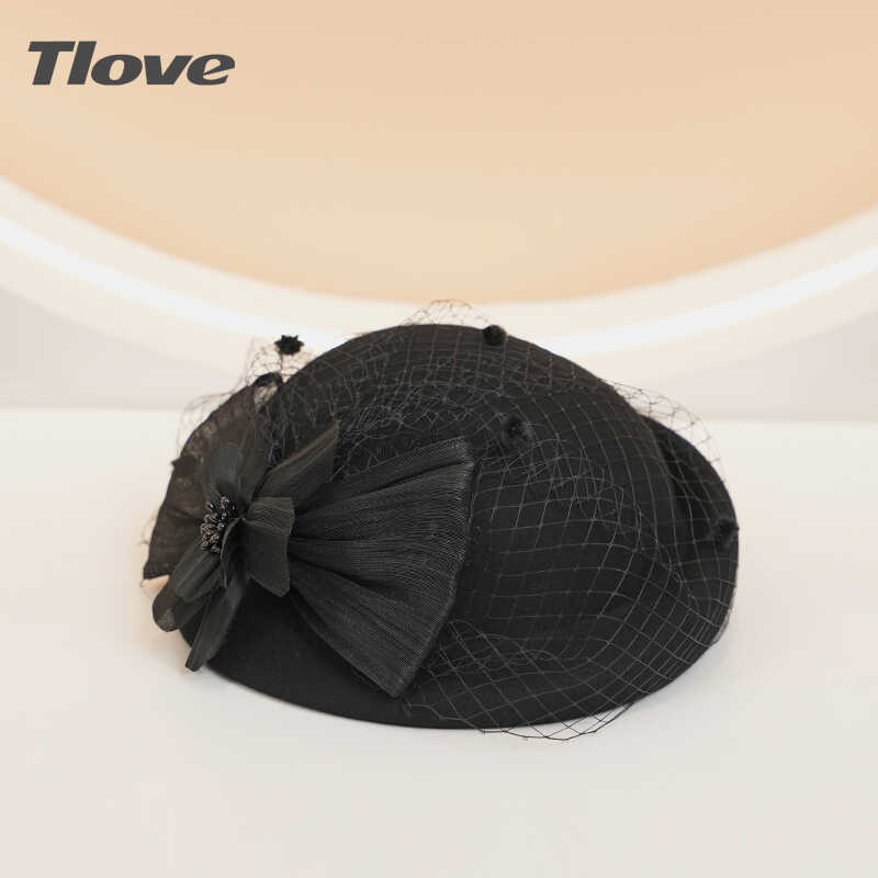 9630气质百搭羊毛小礼帽女士秋冬新款真丝麻蝴蝶结优雅立体贝雷帽