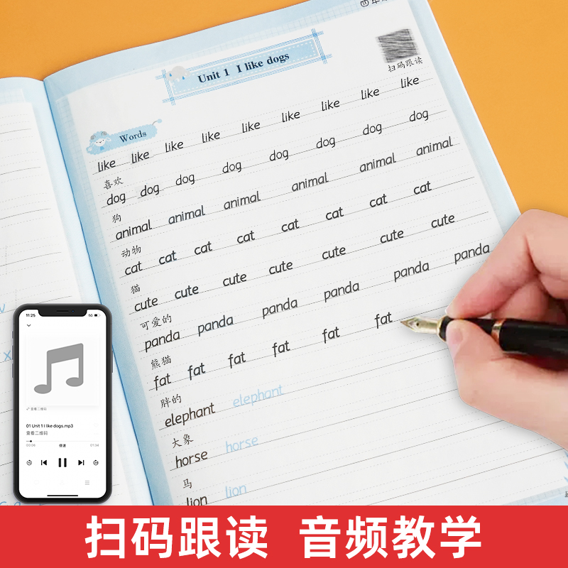 译林版衡水体英语同步练字帖三年级起点小学生英语字帖描红三年级上册下册四五六年级同步练字帖控笔训练英文字母每日一练字帖练字