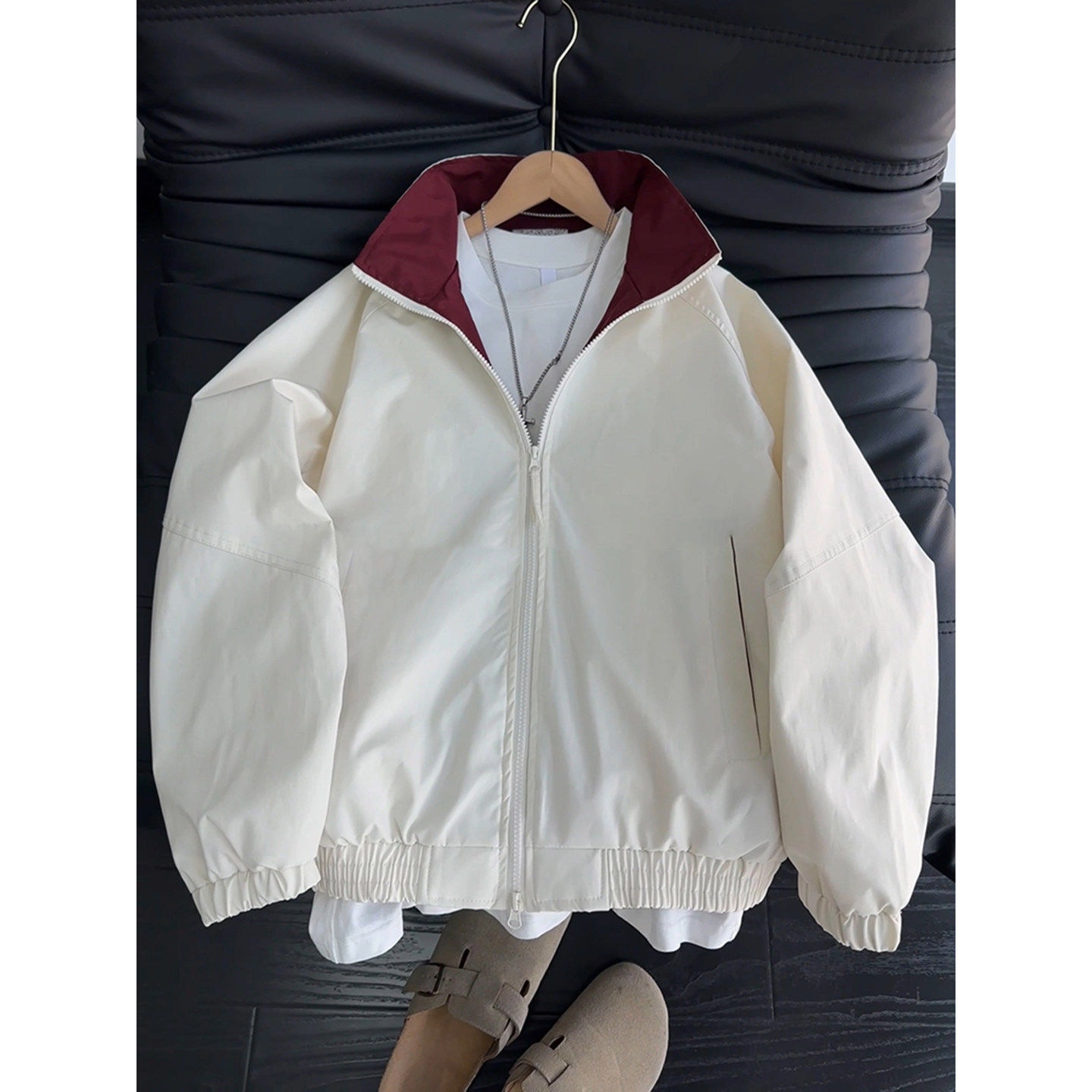 撞色廓形立领运动外套男款春季穿搭美式飞行夹克高级感痞帅棒球服