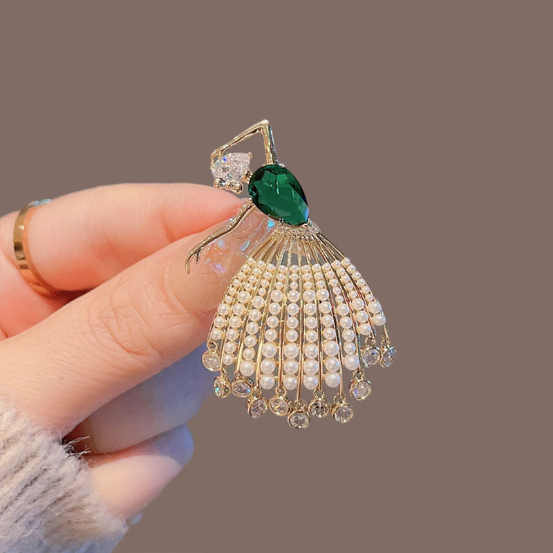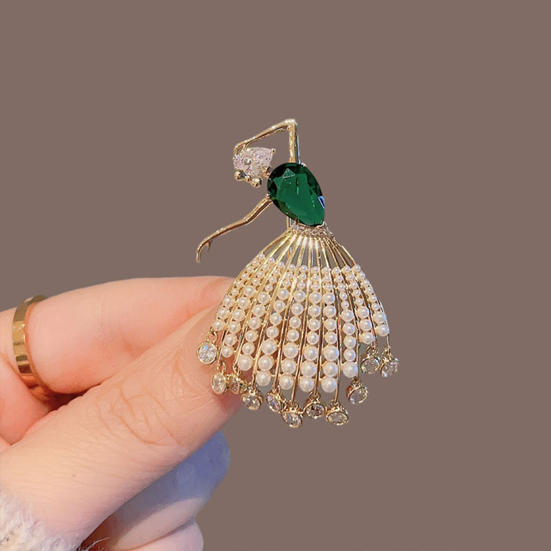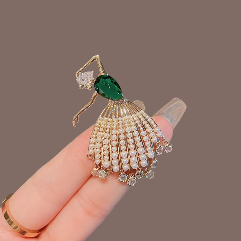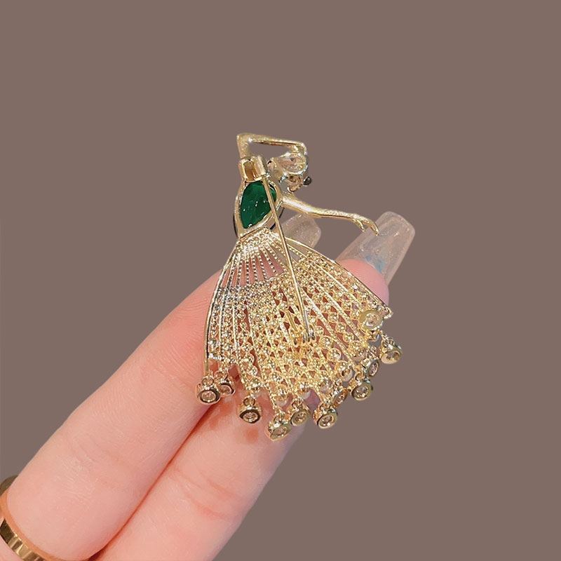 祖母绿锆石芭蕾女孩胸针女高档