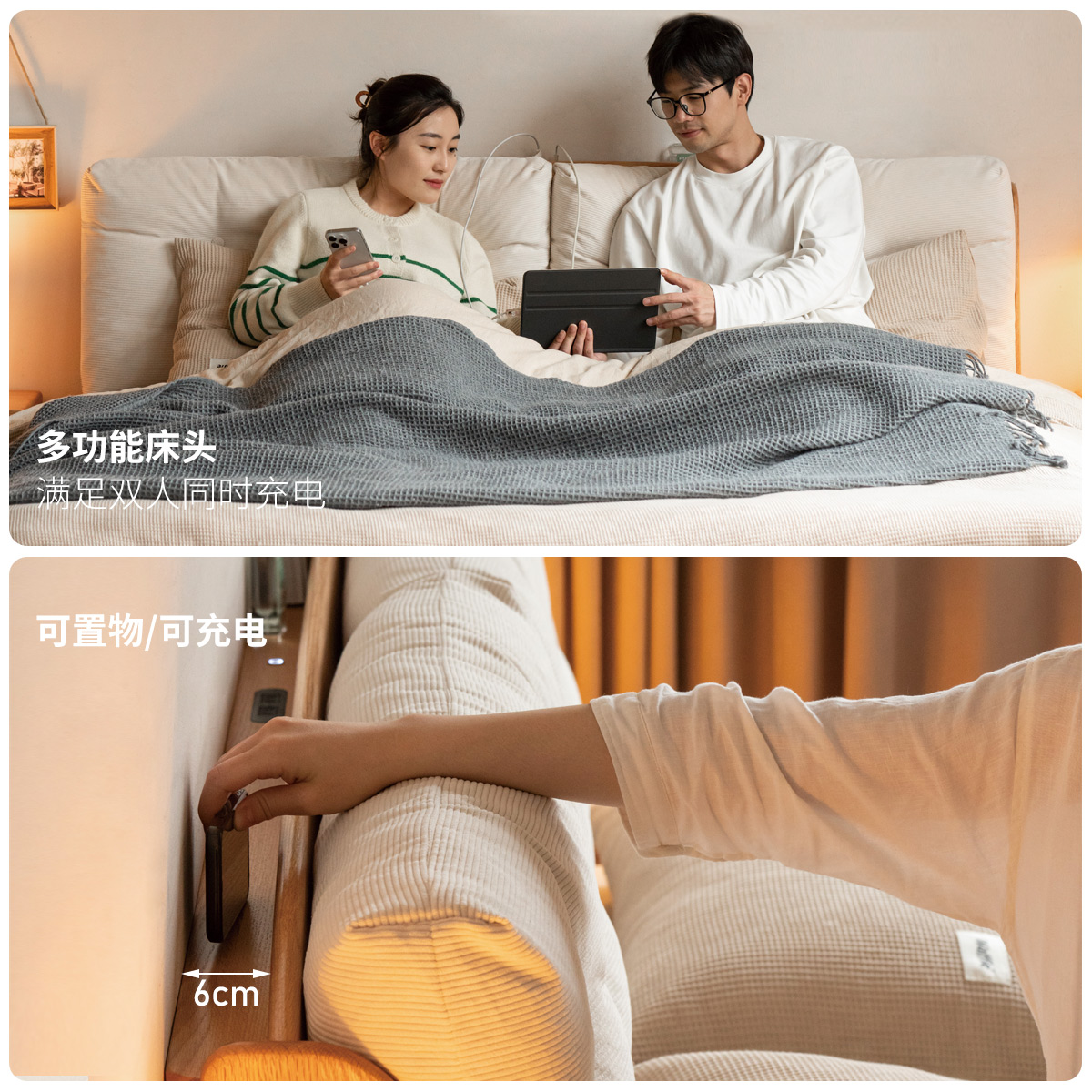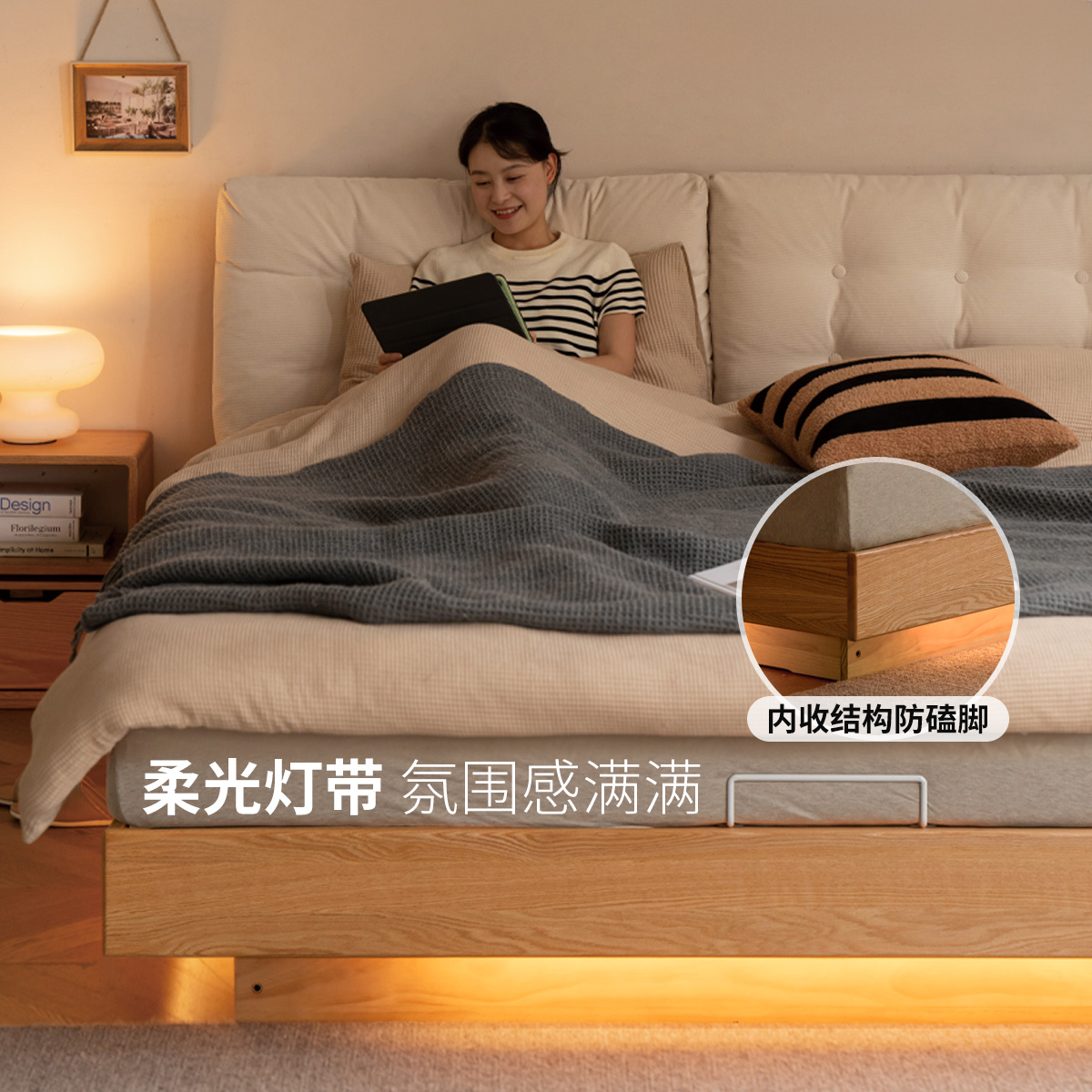 源氏木语实木床奶油风卧室床头软包箱体床日式双人床多功能夜光床