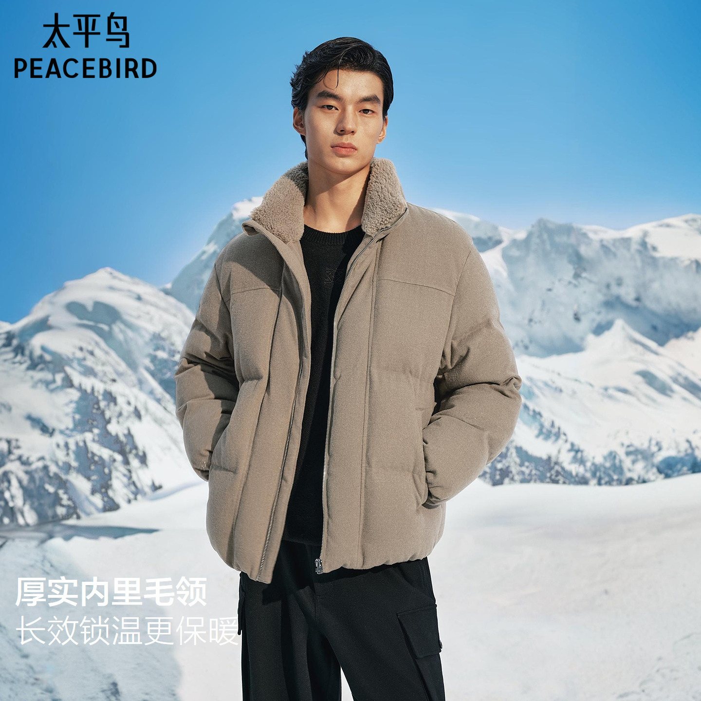 太平鸟男装 毛领羽绒服男2025年冬季新款保暖短款立领面包防寒服