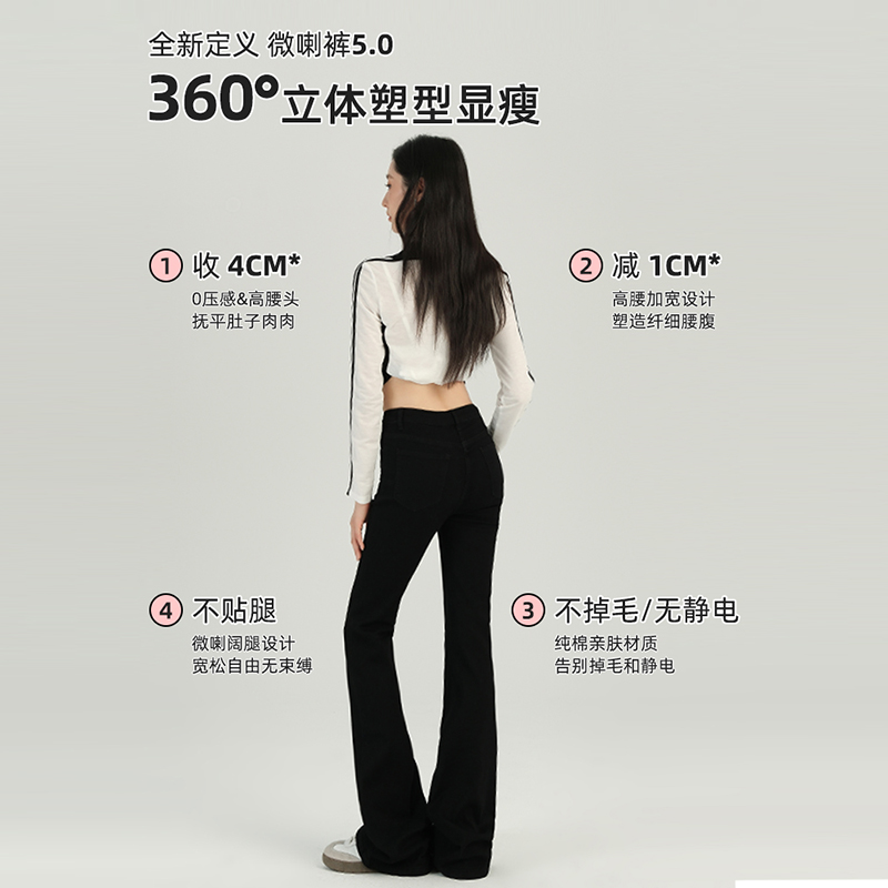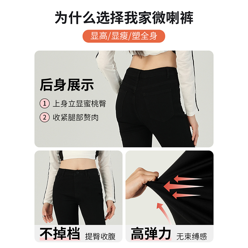 黑色微喇牛仔裤女2025秋冬加绒新款小个子高腰弹力修身喇叭马蹄裤