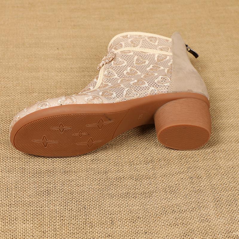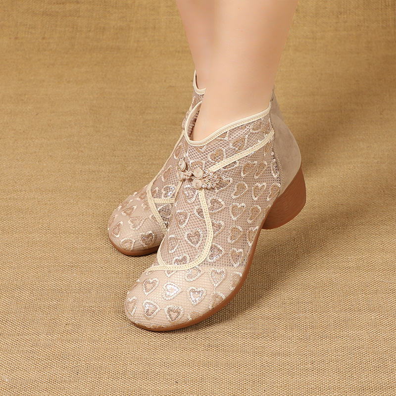 民族风盘扣网纱靴子女国风配裙妈妈短靴透气镂空网靴中跟女夏凉靴