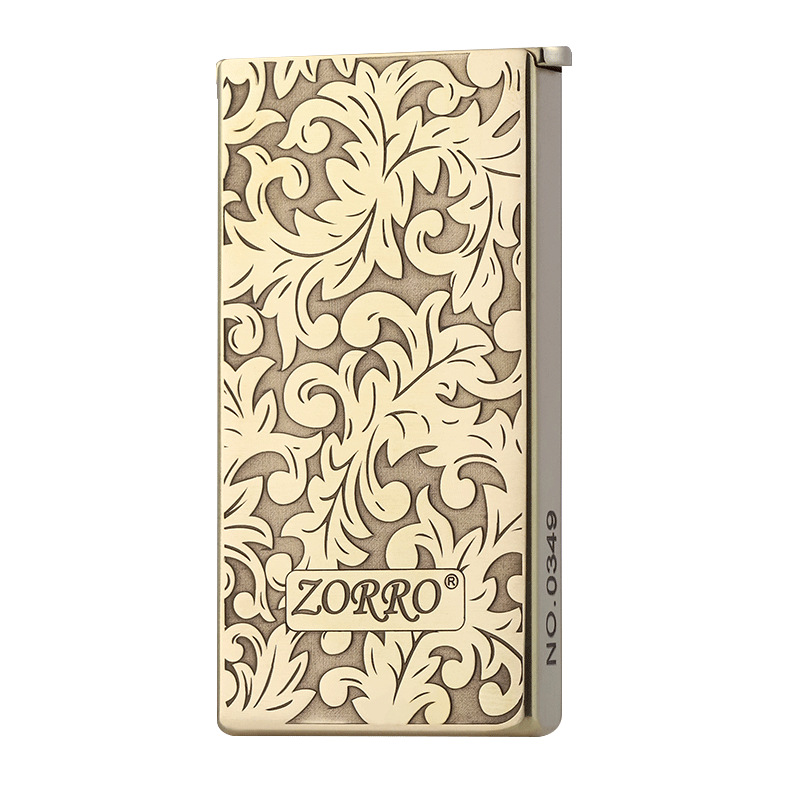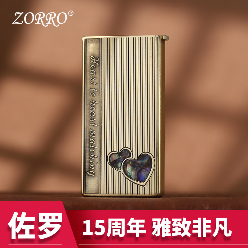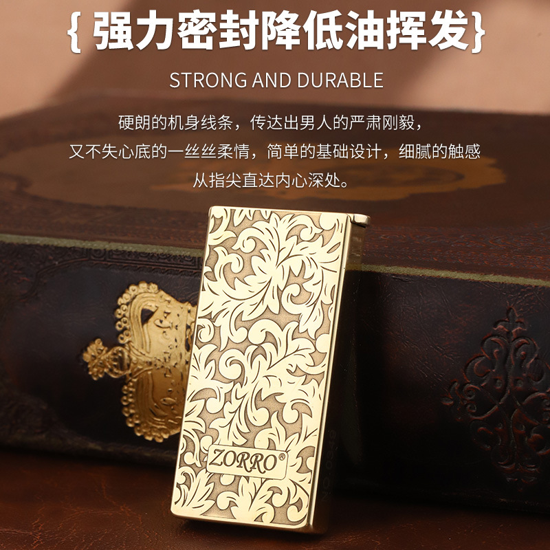 ZORRO佐罗新款砂轮煤油打火机纯铜超薄窄款彩贝蝴蝶限量码升降机