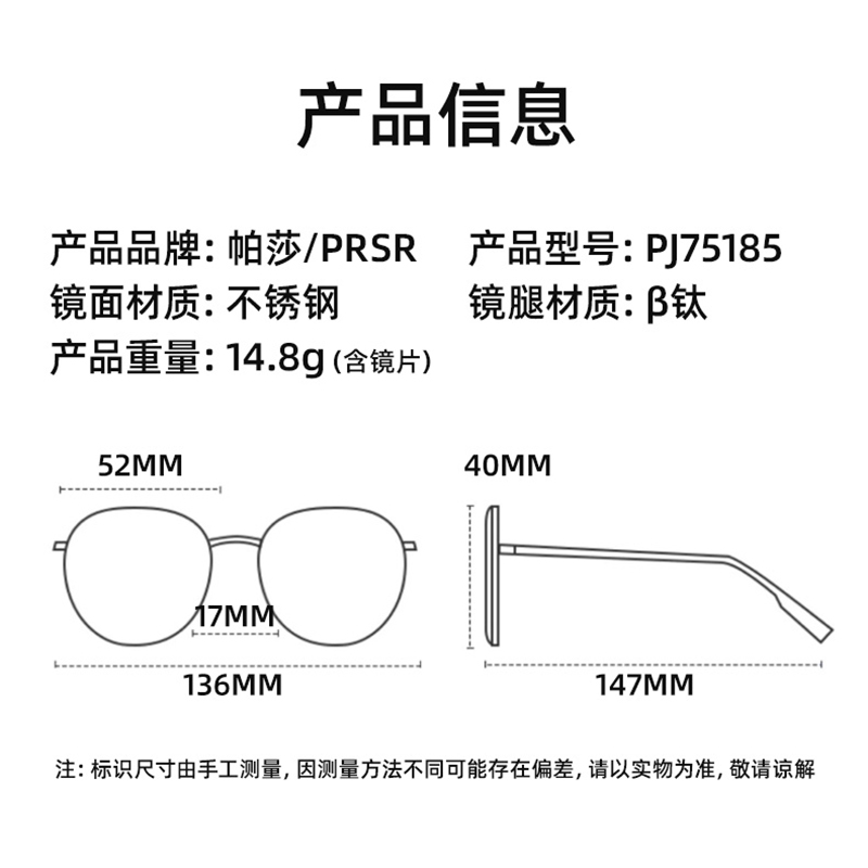 帕莎PRSR个性形钛合金休闲眼镜框可配度数超轻近视眼镜架P75185